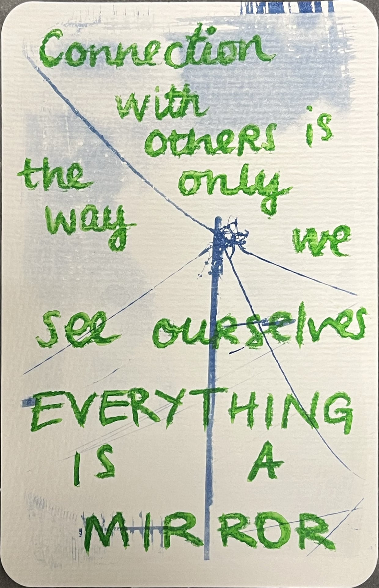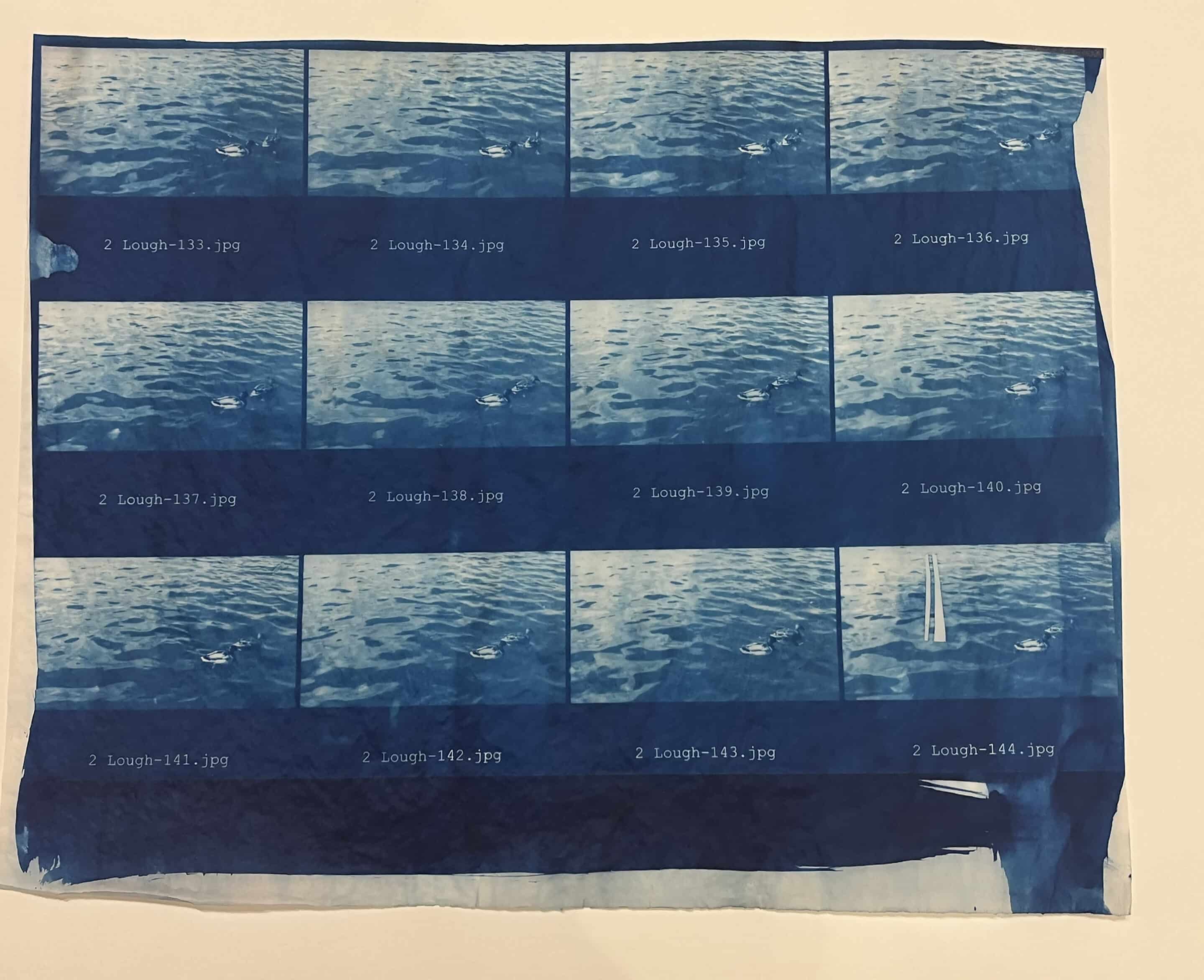 As I walked from Cork Lough to Cork Printmakers every day, I was enthralled by the mess of wires that were coming and going from every telephone pole on Barrack St. These telephone poles became the visual signifier for connection in my work. To accompany these, I took to social media to ask what does community and connection mean to the people around me. The results varied from passages around language, culture and ancestry from friends abroad to confessionals about learning the differences between true bonds and ‘safety net’ friends. In my reaching out, I found connection to people and place, including the ducks on Cork Lough who I walked by each day.