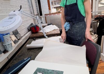 She is excited at the prospect of discovering what birdlife the wetland habitat supports at this time of year at Annaghmakerrig Lough. Observing and recording through drawing and photography is an essential part of her process and preparation for all her linocuts. The use of Albion and Rochat presses in the print studio will give Fran the time and space to execute this work.